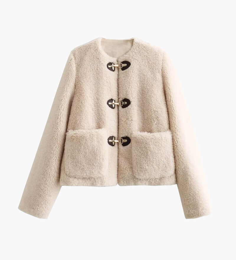 Teddy Fleece Jacket with Toggle Closure and Front Pockets