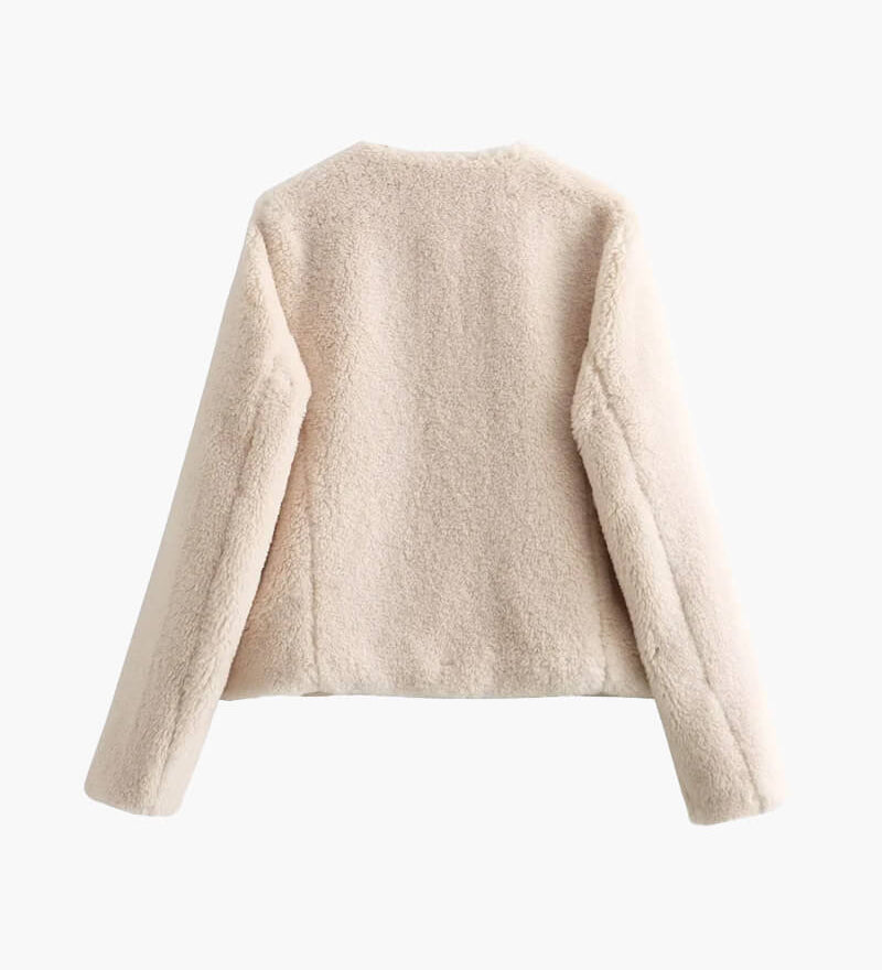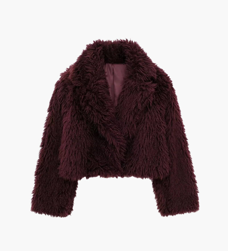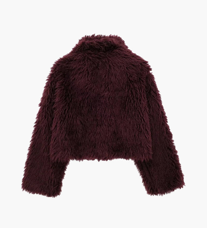 Shaggy Faux Fur Jacket with Wide Lapel and Cropped Fit
