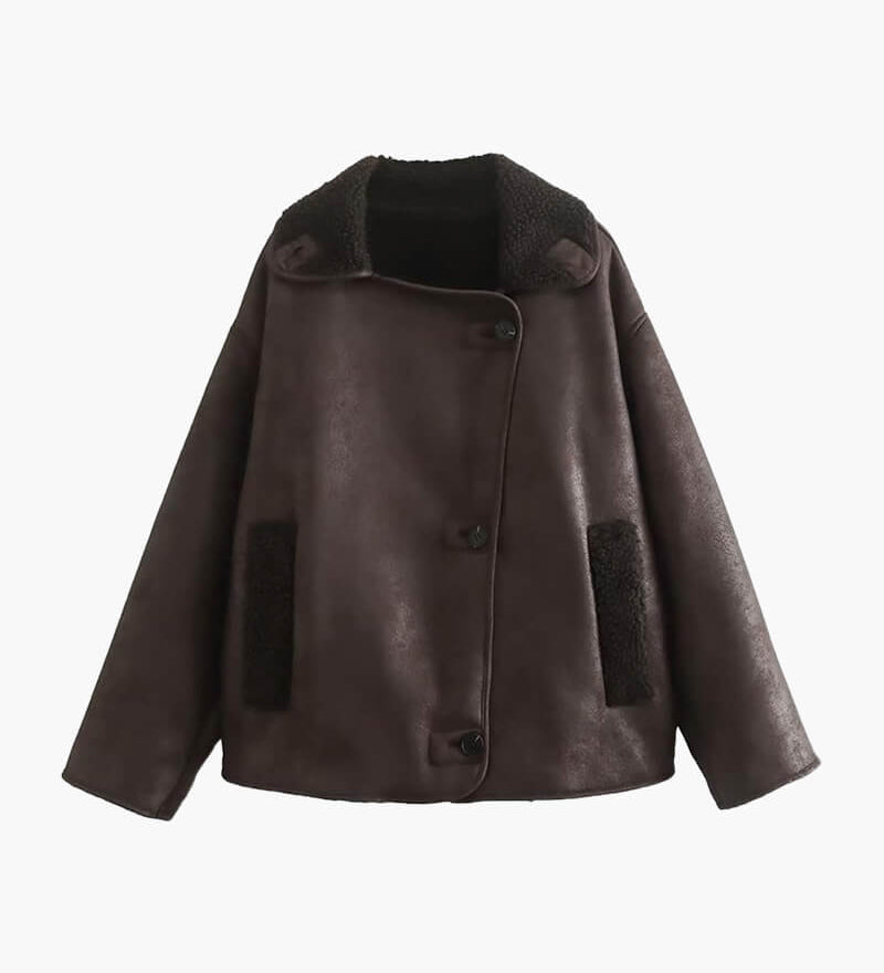 Oversized Faux Shearling Aviator Jacket with Asymmetric Closure