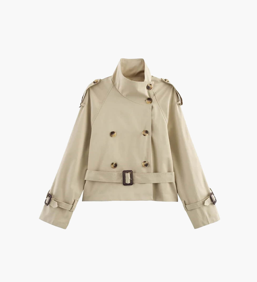Cropped Double-Breasted Trench Jacket with Belted Cuffs