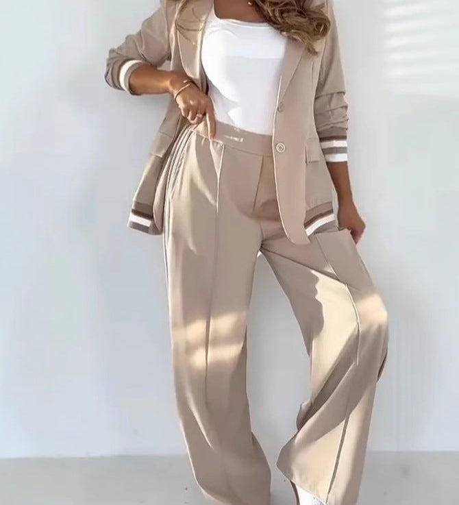 Sporty Tailored Co-Ord Set with Blazer and Wide-Leg Trousers