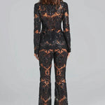 Lace Co-Ord Set with Sheer Blazer and Flared Trousers
