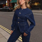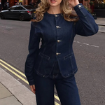 Tailored Denim Co-Ord Set with Gold Clasp Detail