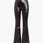 High-Waisted Faux Leather Flared Trousers with Front Slits