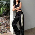 Women's Parachute Trousers – Black and Grey Colourblock Wide-Leg Streetwear Pants