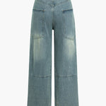 Bring an elevated edge to your everyday wardrobe with these Faded High-Waisted Wide-Leg Jeans for women. Crafted from soft yet durable denim, this design features eye-catching curved seam details that contour the legs while adding a subtle sculptural shape. The vintage-style faded wash gives it that effortless worn-in look.