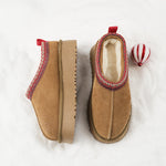 Product Highlights: • Platform sole adds height and modern design • Slip-on style for quick and effortless wear • Soft inner lining for warmth and comfort • Durable outsole provides grip and stability • Decorative trim adds an elegant finishing detail • Ideal for lounging, travel, or everyday indoor comfort